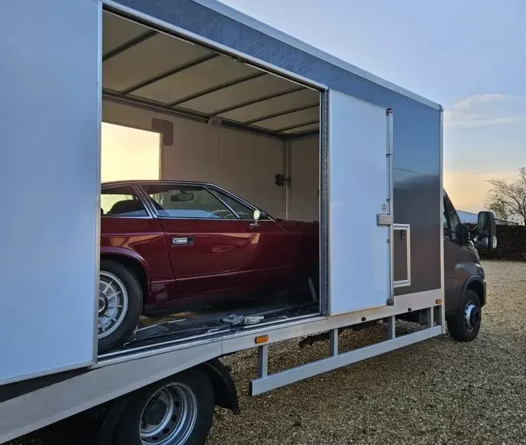 Our fleet features custom-built enclosed bodies on versatile chassis like the Iveco Daily, equipped with low-approach ramps and hydraulic lift gates. This allows us to safely load vehicles with extremely low ground clearance without the risk of scraping undersides. Inside the transporter, the environment is clean, dry, and secure, with vehicles strapped down using soft materials to ensure no metal-to-metal contact occurs during transit.